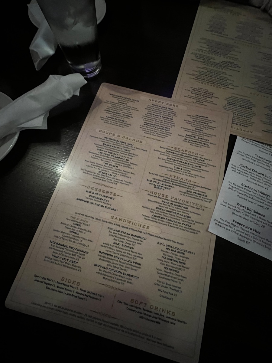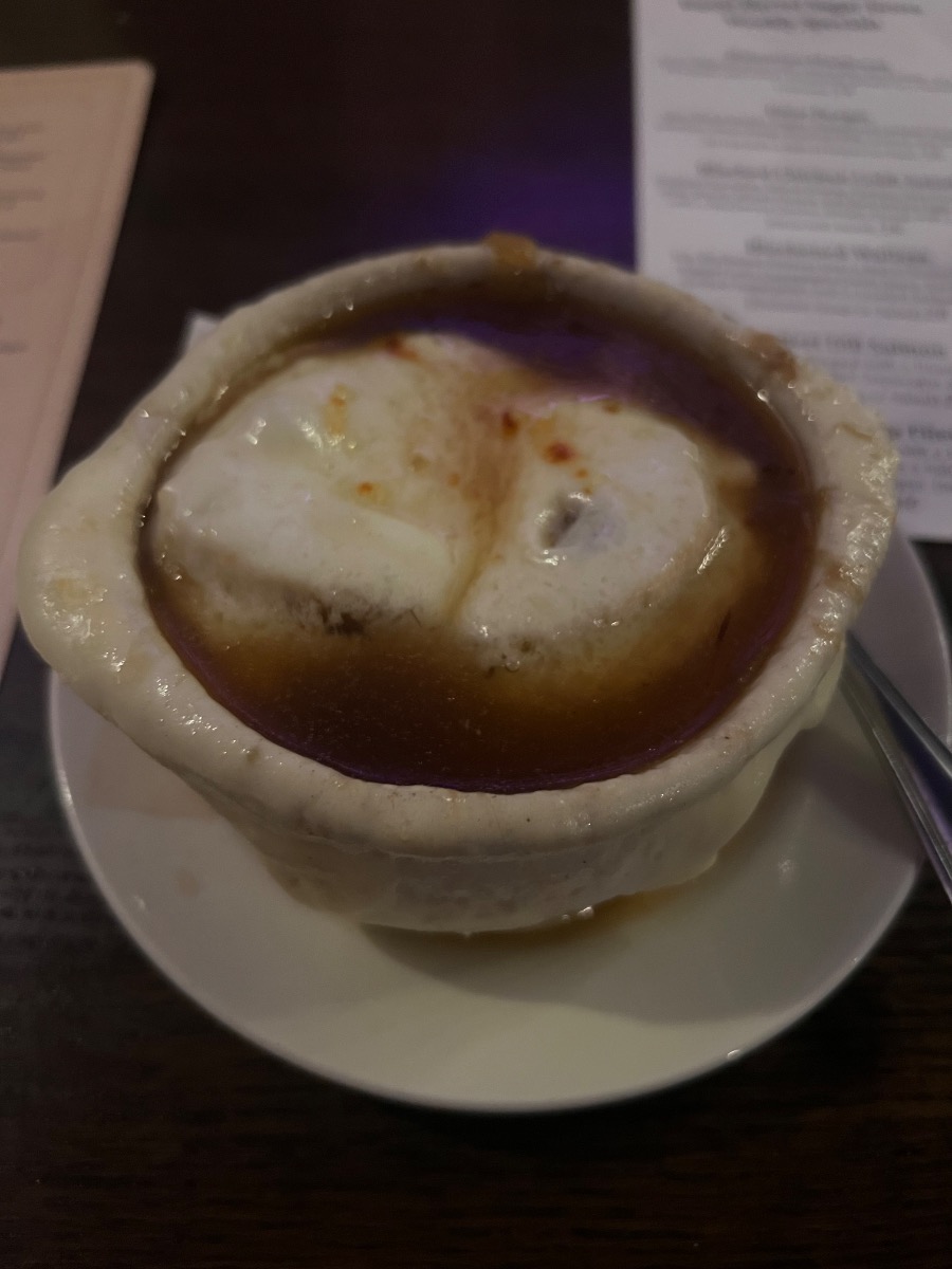 It was pretty good nothing crazy 1 whiskey 1 lemonade 2 soups 2 sandwiches All taste good and came out warm.